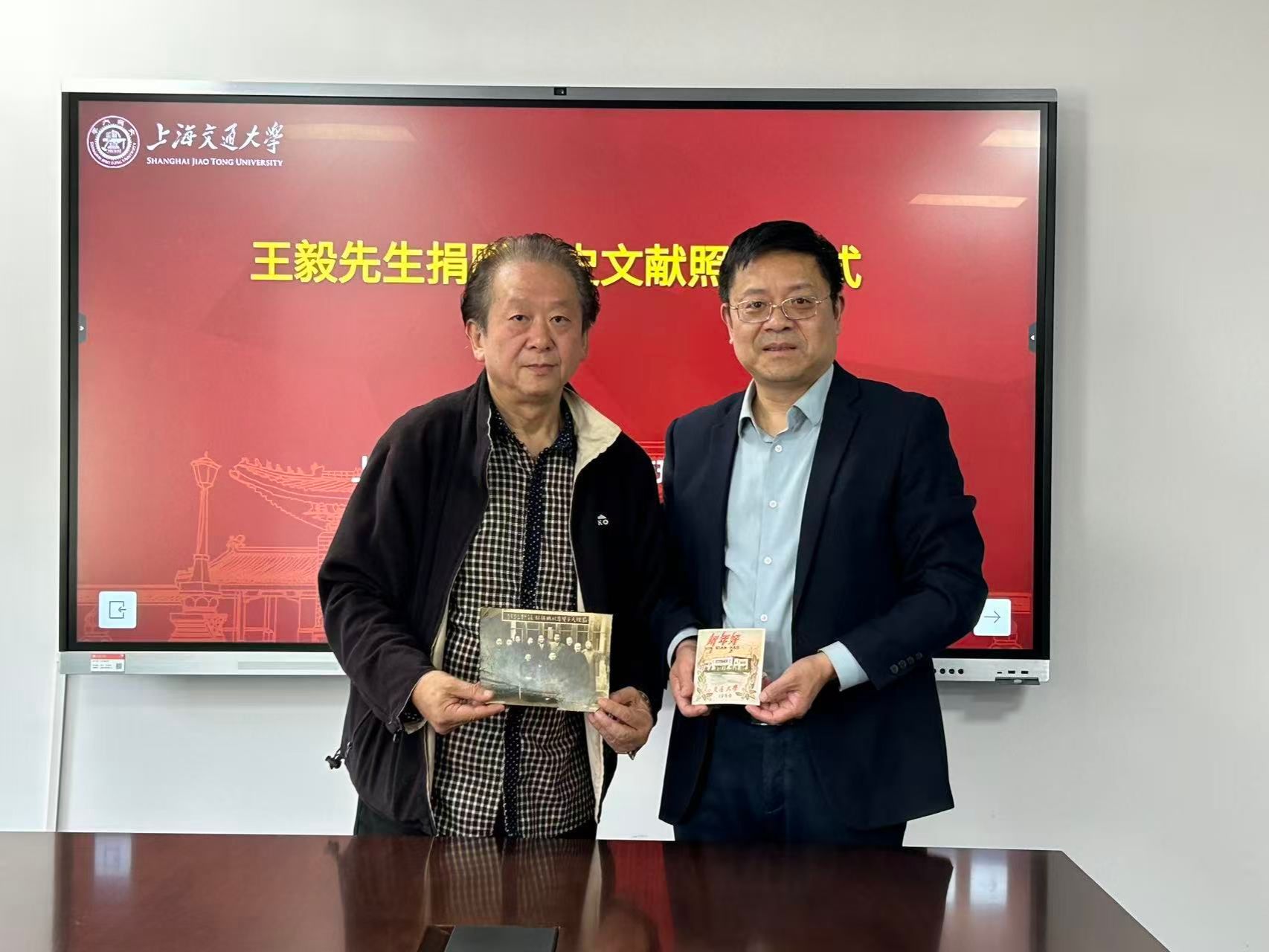 2025年11月5日,上海交通大学档案文博中心举行唐文治校长照片捐赠仪式。上海历史博物馆研究馆员王毅先生向学校档案文博中心捐赠唐文治校长照片一帧及1958年交通大学新年贺卡一张。“茹经夫子双寿祝嘏摄影”摄于1947年11月,唐文治校长时年82岁,该照片的发现及面世为唐文治研究增添了新的历史影像。